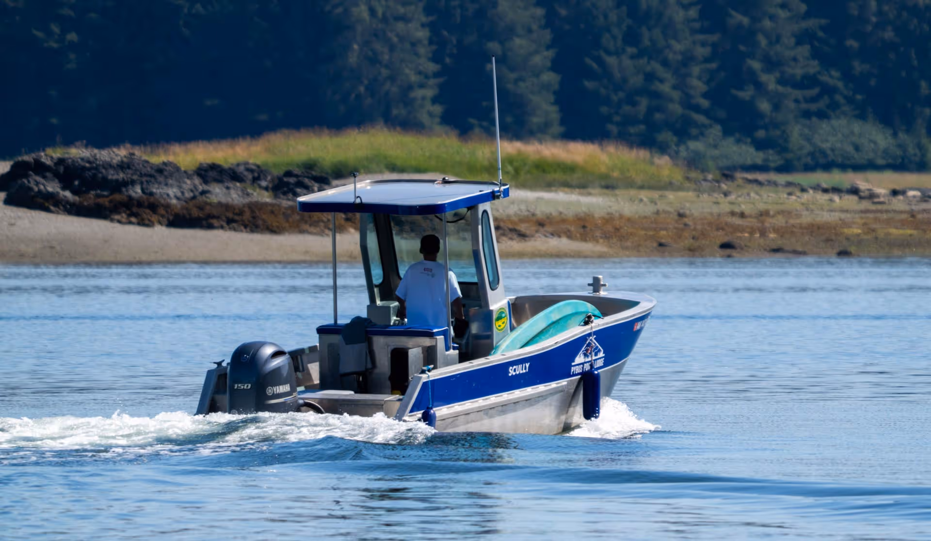Every skiff adventure is included as part of your stay with us at Pybus Point Lodge. This makes it easy to see all the marvelous wildlife and beautiful natural surroundings of the area in between your guided fishing trips. Just come on down to the docks and a member of our dock team will show you how to pilot the skiffs and provide you with all the necessary safety gear to ensure a fun-filled adventure whenever you want to go.